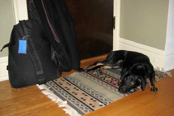 Sorry, P-Dog. Today I have to meet with people, so he has to stay in the bedroom. Don't worry, though: two liver treats softened the blow.