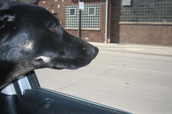 (I have to say, it's a little disconcerting to have a dog nosing one's ear when the car is moving.)