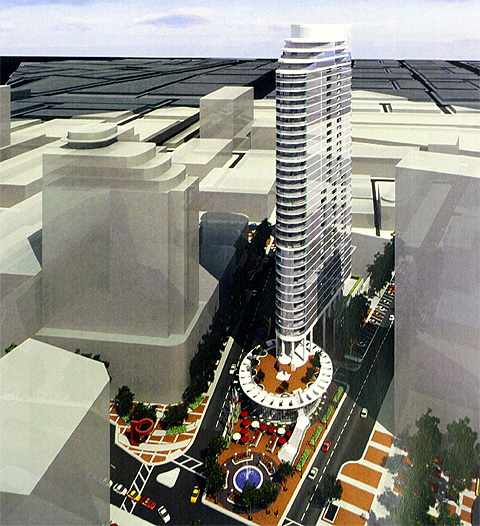 The proposal, from developers R.D. Horner & Associates and HSA Commercial Real Estate and the architectural firm Daniel P. Coffey and Associates, calls for the developers to rebuild the public plaza at Fountain Square and slip two levels of underground parking for the condominium high-rise under the public plaza.