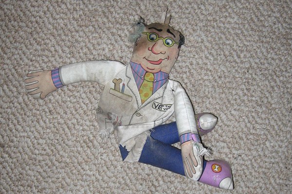 The stuffed vet that Danielle gave Parker a couple weeks ago still lives on—though empty of stuffing and looking a bit haggard: