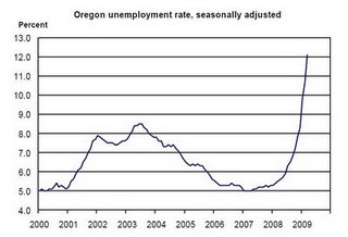 Oregon’s seasonally adjusted unemployment rate rose to 12.1 percent in March from 10.7 percent (as revised) in February. The state’s unemployment rate has risen rapidly and substantially over the past nine months, from a rate of 5.9 percent in June 2008. The U.S. seasonally adjusted unemployment rate rose to 8.5 percent in March, from 8.1 percent in February.