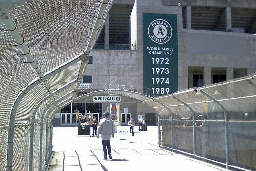 From the moment you get off the BART, you know you're not going to the Friendly Confines of Wrigley Field. Wrigley, for example, has less concrete and barbed wire: