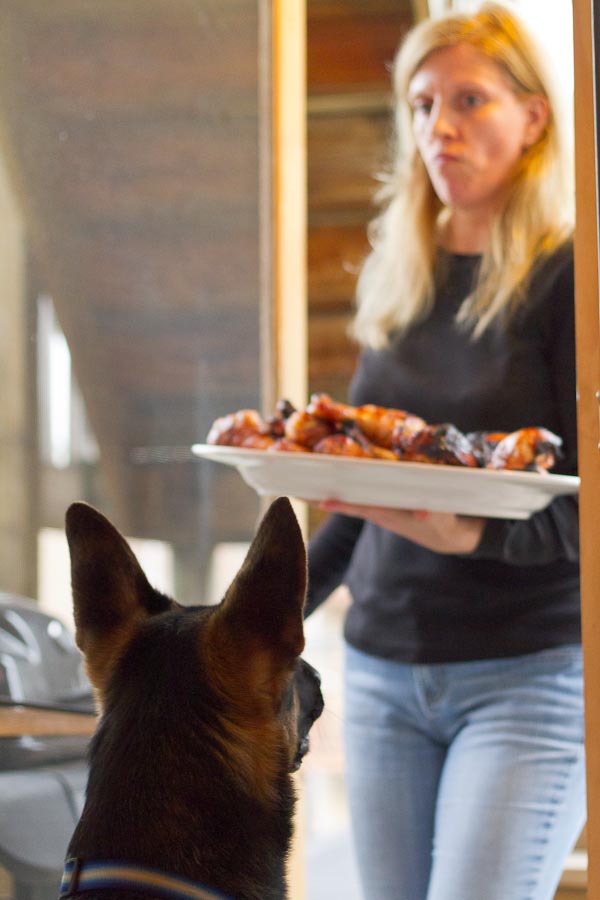 Eleven-month-old German Shepherd Dog Rex watches his mom carry in the barbecued chicken yesterday in Chicago: