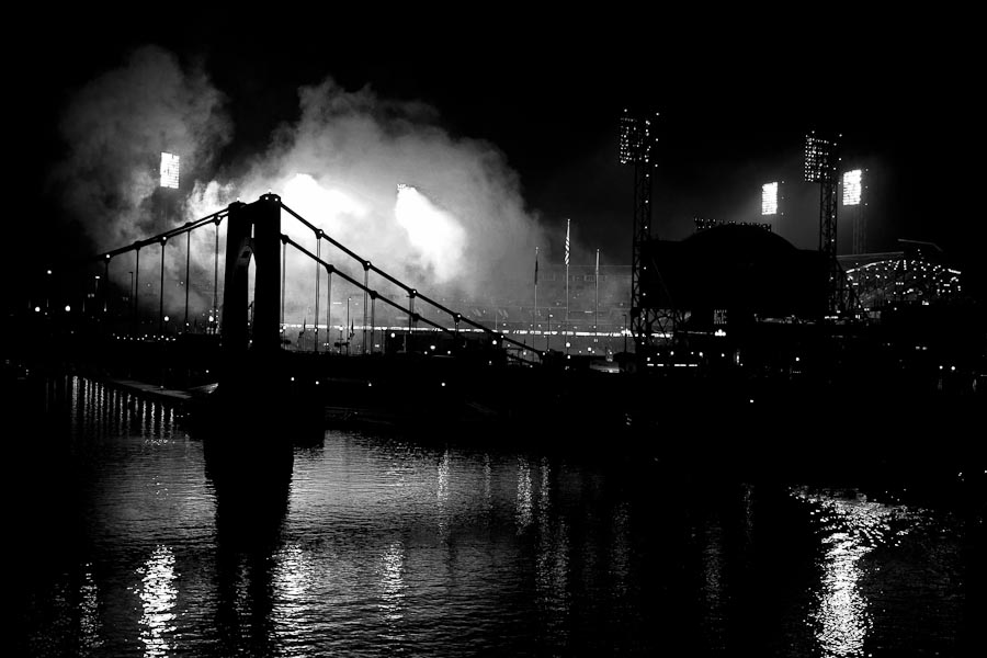 Yet another view of PNC Park, from the Warhol Bridge, after the fireworks: