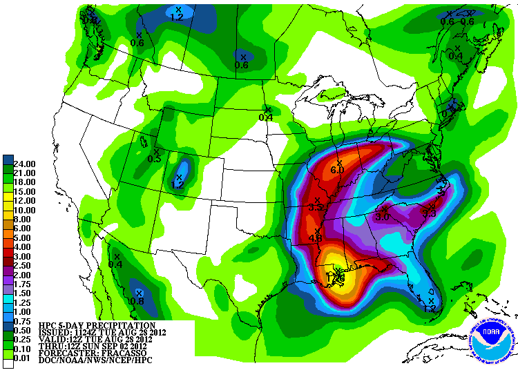 Hurricane Isaac is about to come ashore in New Orleans (check out the current wind map for an arresting view), and by Friday night will be giving Illinois some much-needed rain: