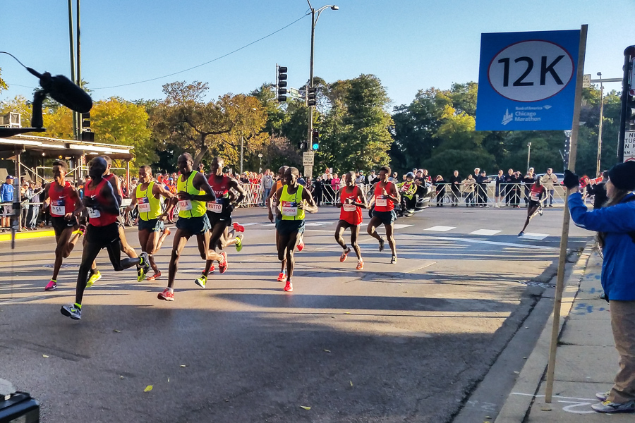 Parker and I raced the elite men in the marathon this morning. Even with a 10 km head start, we still only got to Addison and Lake Shore at the 35-minute mark before they caught up:
