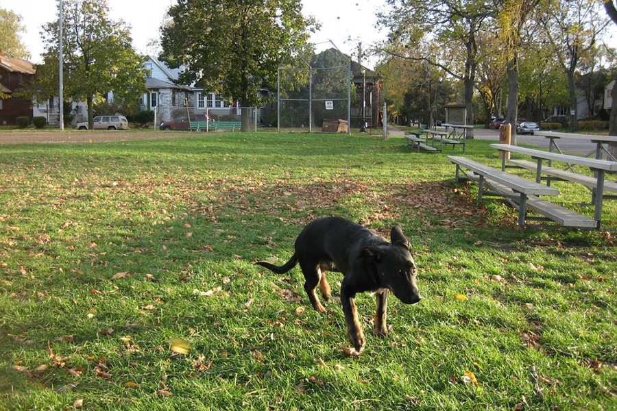 My ex and I got Parker in part because every morning we could see a doggy play group right outside our bedroom window. Here's Parker, 14 years ago today, having a great time there: