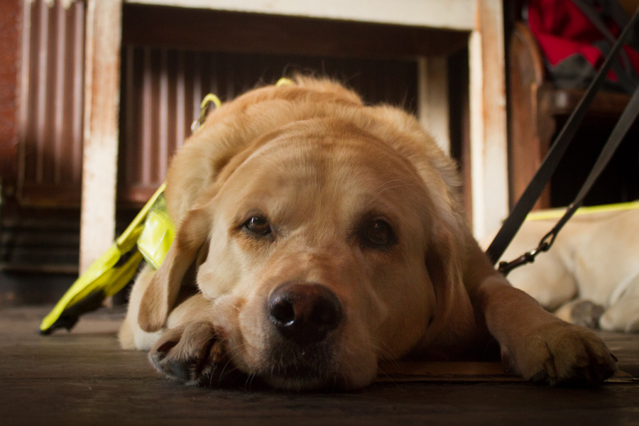 Keira decided I had good hands and kept wandering over for a scritch—a fact that her owner would obviously not notice until I returned her or he needed to go to the loo. By the time they all left, Vickie (a Parker-sized black Lab) and Malone (the yellow Lab behind Keira, above) were coming over to me sometimes two at a time, tails wagging. I know that it's impolite to pat working guide dogs, but I think there's a loophole when the dogs are on break at a pub, right?