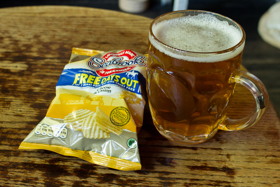 That is a Curious Pale Ale and a packet of cheese and onions crisps. Later I had an ELB Pale Ale (not as good as the Curious) and a Mosaic Pale Ale, which was better than the first two.
